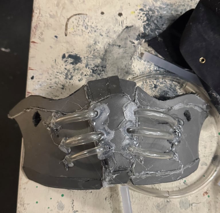Used EVA foam, acrylic tubing, large PVC pipe, and a large plastic tub from the hardware store.